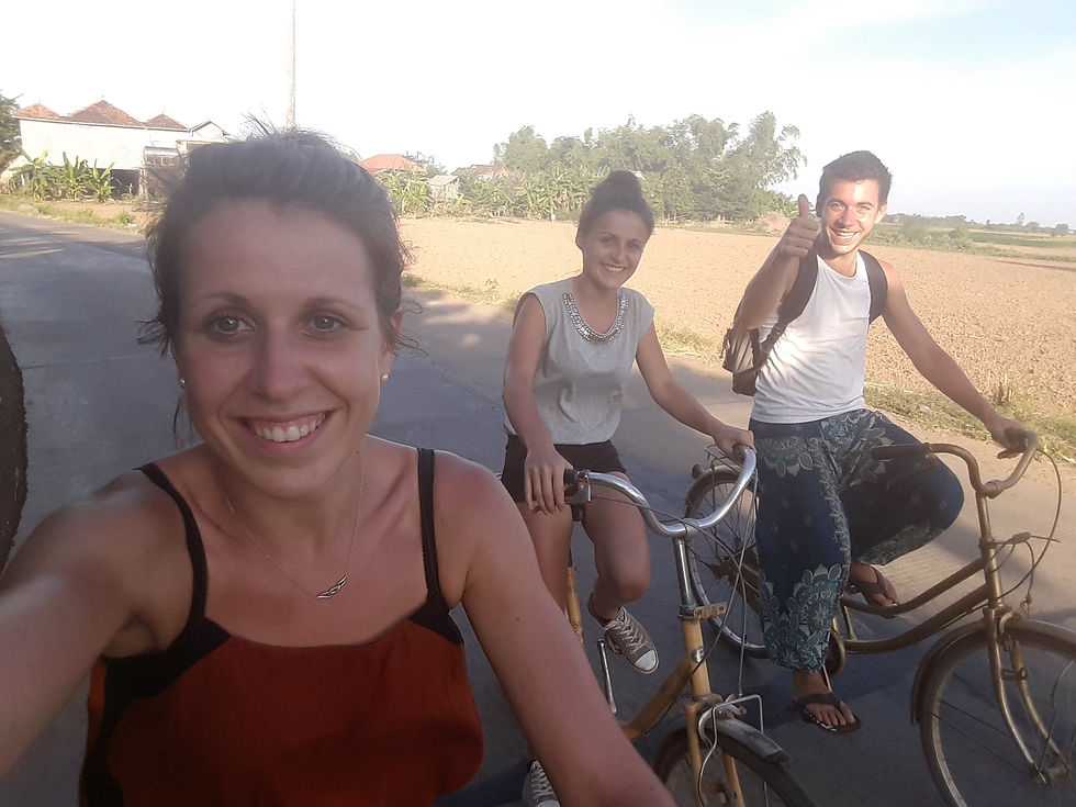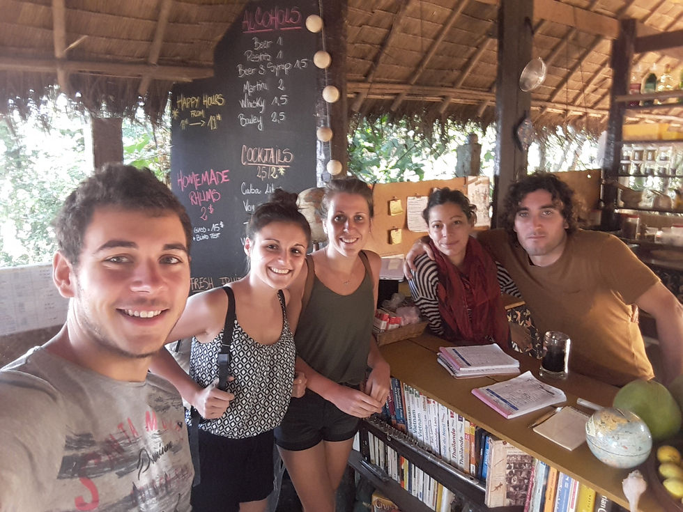 ArrivĂ©s le soir Ă Kampong Cham, nous avons prit la direction de notre guesthouse sur l'Ăźle Koh Paen đ. Petite aventure sur le chemin, une personne nous a proposĂ© gentiment de monter dans sa remorque tractĂ© par son scooteur. Allez en avant pour un petit bout de chemin. Ensuite, arrivĂ©s au pont pour rejoindre l'Ăźle nous avons continuĂ© Ă pied. AprĂšs de bons kilomĂštres dans le noir entre moustiques et chiens un peu agressif quand la nuit tombe, nous sommes arrivĂ©s Ă la guesthouse (Mekong Bamboo Hut). Ce petit lieu magnifique avec sa vue sur le MĂ©kong, est tenu par des français depuis 4 saisons. La particularitĂ© de ce lieu est de dormir dans des hamacs. đ Vendredi : journĂ©e sportive đŽđœââïž. Petit tour de l'Ăźle en vĂ©lo, vue sur de beaux paysages, la petite pĂ©ripĂ©tie sur le trajet, une roue a crevĂ©e. Nous avons demandĂ© de l'aide Ă un habitant, qui nous a gentiment rĂ©parĂ© la roue. On a aidĂ© une petite mamie en difficultĂ© qui essayĂ©e de porter son bout de tronc d'arbre. MalgrĂ© qu'elle ne parlait pas du tout l'anglais, elle Ă©tait heureuse d'avoir eu notre aide et bien sĂ»r petite photo avec elle. AprĂšs ce tour de l'Ăźle, direction Chiro. Sur le chemin pour allez Ă ce petite village, un drapeau rouge au niveau de l'entrĂ©e d'un temple bouddhiste nous interpelle. Ce drapeau c'est PĂ©kin express, de loin on a pu voir deux joueurs entrain de parler Ă la camĂ©ra đ„ đ. Nous sommes arrivĂ©s Ă Chiro, aprĂšs une vingtaine de kilomĂštre dans les jambes đȘđœ. Dure dure sous cette chaleur mais magnifique paysage Ă nous en couper le souffle. Ă Chiro, nous nous sommes arrĂȘtĂ©s dans une guesthouse qui faisait Ă©galement restaurant. Nous avons pu manger et se dĂ©saltĂ©rer aprĂšs ce premier parcours sportif. LĂ -bas, nous avons rencontrĂ©s des personnes qui s'occupent d'une association (OBT Organization For Basic Training), aprĂšs nous avons vu une danse traditionnelle faite par les enfants du village. AprĂšs cette petite pause bien mĂ©ritĂ©, nous sommes remontĂ©s sur nos vĂ©los đŽđœ pour retourner Ă la guesthouse. Sur le retour nous sommes rentrĂ©s dans le temple oĂč il y avait le tournage de PĂ©kin express, il n'y avait plus personne sur place. Mais nous avons parler avec un Ă©lĂšve bonze. Il nous a racontĂ© son histoire de vie, pourquoi il a voulu devenir bonze. Il nous a dit qu'il ne pouvait pas avoir de femme parce que dans la religion il est dit que le cĆur doit rester silencieux. Au retour Ă la guesthouse nous nous sommes reposĂ© autour d'un petit plat thaĂŻlandais. On a rencontrĂ©s d'autres guests, des italiens et une française. Le samedi nous sommes allĂ©s visiter Wat Nokor, la colline aux hommes (Phnom Pros) et la colline aux femmes (Phnom Sreis). Le trajet cette fois c'est fait en tuktuk, petite visite guidĂ© par le conducteur qui parlĂ© français, il nous a racontĂ© l'histoire des temples. Une lĂ©gende explique que les femmes demandaient les hommes en mariage. Les plus belles recevaient l'acceptation des hommes tandis que les plus laides essuyaient leur refus. Les femmes Ă©tant lassĂ©s, organisĂšrent une compĂ©tition dont le but Ă©tait l'inversion de l'ordre des choses. Le challenge ayant pour objectif de construire la plus haute colline en une nuit, l'apparition de l'Ă©toile du matin marquant l'arrĂȘt des travaux, arbitrerait le conflit. Dans le courant de la nuit, la colline des hommes avançait plus vite que celle des femmes. Elles utilisĂšrent alors un subterfuge pour tromper les hommes, allumant un feu, elles le dressĂšrent sur une longue tige de bambou au sommet de la colline. Les hommes harassĂ©s par la lourde tĂąche, croyant l'Ă©toile du matin apparue, s'endormirent; pendant ce temps les femmes continuaient l'Ă©lĂ©vation de leur colline. Au lever du jour, se rendant compte de la mĂ©prise, ils durent constater l'Ă©vidence : La Colline des Femmes Ă©tait plus haute que la Colline des Hommes. Depuis ce temps ce sont les hommes qui font la demande en mariage au risque d'essuyer le refus de la belle ou de sa famille. Le samedi en dĂ©but d'aprĂšs-midi, avant de retourner Ă la capitale, une deuxiĂšme pĂ©ripĂ©tie. Lors d'un retrait d'argent, la machine Ă confirmĂ© la transaction sans donner la monnaie. Une longue discussion de trente minutes pour qu'enfin le supĂ©rieur de la banque dise que l'argent ne sera pas perdu. Plus qu'Ă attendre le dĂ©lai de transaction pour vĂ©rifier. Dimanche, dĂ©part pour l'orphelinat đ§đœđŠđœ Ps: pour les photos voir album weekend 3 đÂ