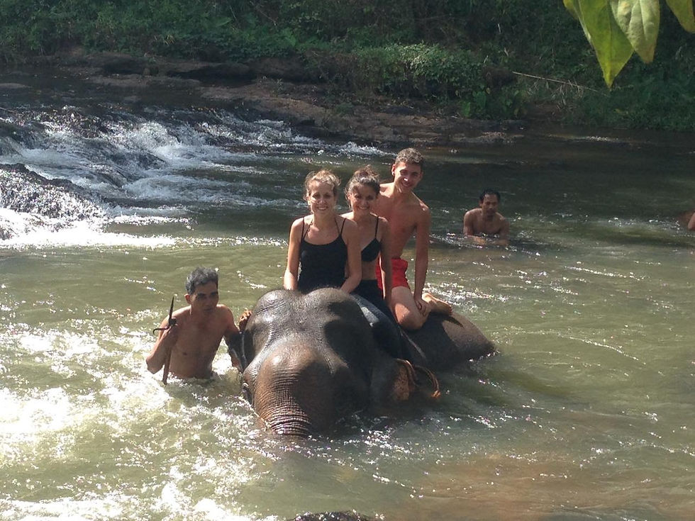 Pour notre dernier week-end à la découverte du Cambodge, nous avons pris la direction de Sen Monorom qui se trouve à l'Est du pays, à la frontière du Vietnam. Au programme : trek dans la jungle et rencontre avec les éléphants. Le vendredi nous sommes partis à 8h30 pour rejoindre notre guide local pour ensuite commencer les 18km de marche à travers la jungle 👟. Paysage magnifique avec un guide qui nous a donné des informations sur la faune et la flore 🌱🐜. En effet, il existe dans la jungle de nombreuses plantes utilisées pour la médecine : céphalées, toux, cancer, piqures d'insectes... Nous n'avons pas pu voir d'animaux car ces derniers sortent la nuit. Le guide nous a expliqué qu'il y avait des mygales, des boas dans, des singes, des ours... 🐒🐻🕷🐍. Apres 7km, nous nous sommes arrêtés pour dejeuner auprès d'une cascade (et par la même occasion reposer nos jambes 🤤). Après plusieurs montées, descentes et pont de bambou, qui sans vous le cacher on été très épuisantes, nous sommes arrivés dans le village de notre guide. 🏕. Nous avons été accueillis dans leur habitation, où nous avons pu manger et déguster le typique alcool de riz 🍲🍶. Apres une bonne nuit de sommeil dans des hamacs (chant du coq, bagarre de chien, vents), nous avons de nouveau marché 1h30-2h pour atteindre la rivière où nous avons passé l'après midi. Au programme : nourrir les éléphants, les laver et se baigner avec 🐘. Le midi, nous avons mangés dans une hut avec notre guide qui nous a fait découvrir le manioc et le tabac local. Apres ces deux journées très sportives mais magnifiques, nous sommes ensuite rentrés à Sen Monorom pour y prendre un bus de nuit direction Phnom Penh 🌘.